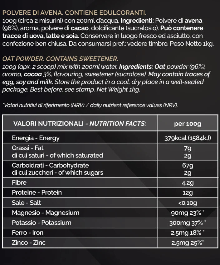 Tai aukštos kokybės natūralios sudėties greitai paruošiama stracciatella skonio avižų košė, skirta sveikiems ir subalansuotiems pusryčiams ar užkandžiams. Šis produktas pagamintas iš 100% pilno grūdo avižų, kurios suteikia ilgai išliekantį sotumo jausmą, taip pat yra puikus energijos šaltinis. Avižose gausu skaidulų, vitaminų ir mineralų, kurie prisideda prie virškinimo gerinimo ir bendro sveikatos palaikymo. Tinka blyneliams, kokteiliams ir sveikiems receptams – paruošiama vos per kelias minutes.