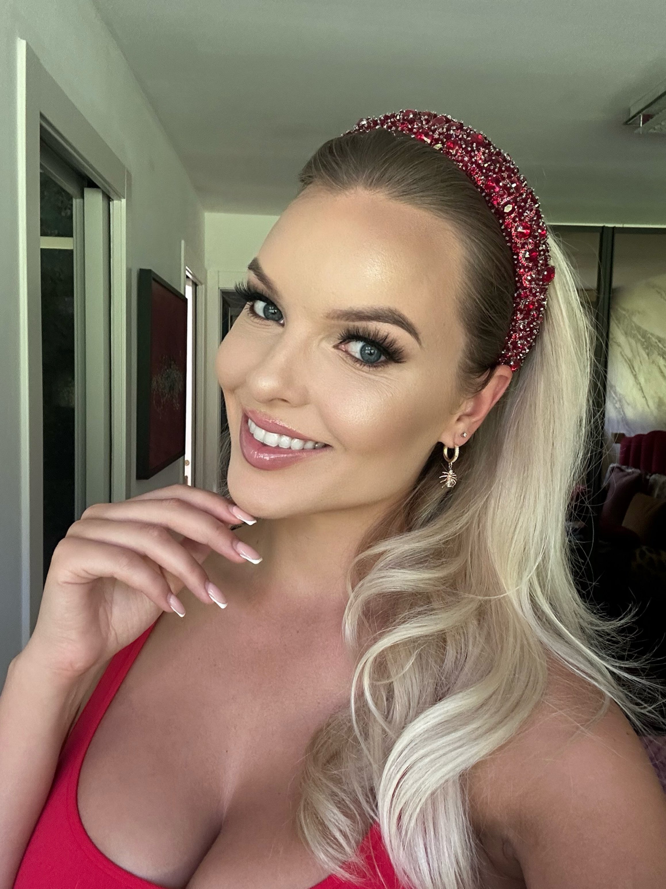 G7EVEN BOUTIQUE prabangus rankų darbo lankelis „Queen" - raudonas
