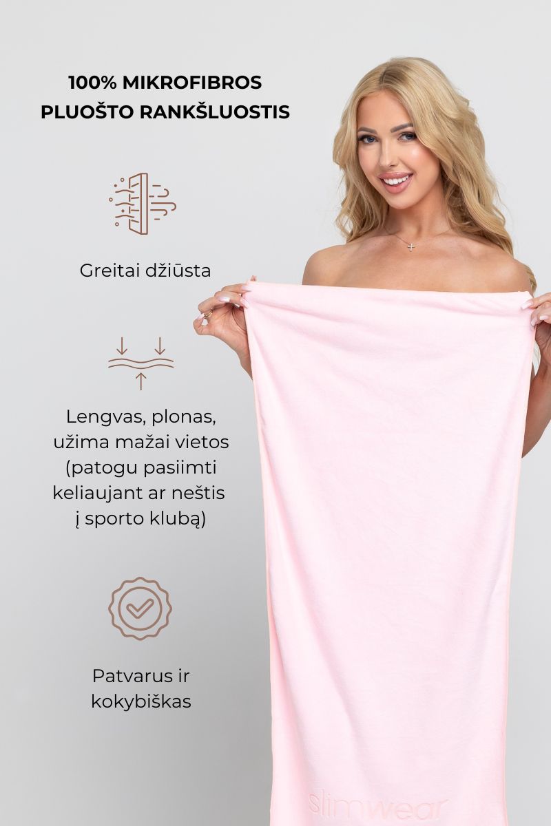Neapsunkinkite savo sporto krepšio su galybe storų ir sunkių rankšluosčių. „Slimwear" naujiena – ploni, lengvi ir itin gerai sugeriantys mikrofibros rankšluosčiai, kurie taps patogiais pakeleiviais į sporto salę. Juos galima pasitiesti ant sporto įrenginių, nusišluostyti prakaitą ar panaudoti duše. Kadangi jie itin ploni, todėl užima mažai vietos ir minimaliai prisideda prie sporto krepšio svorio.