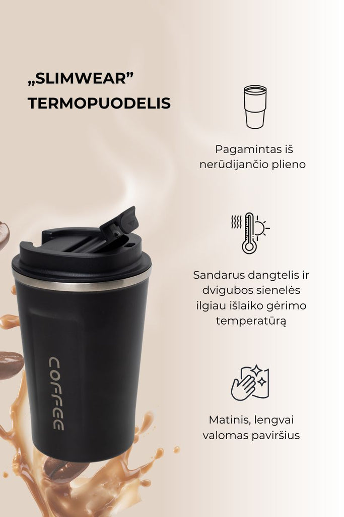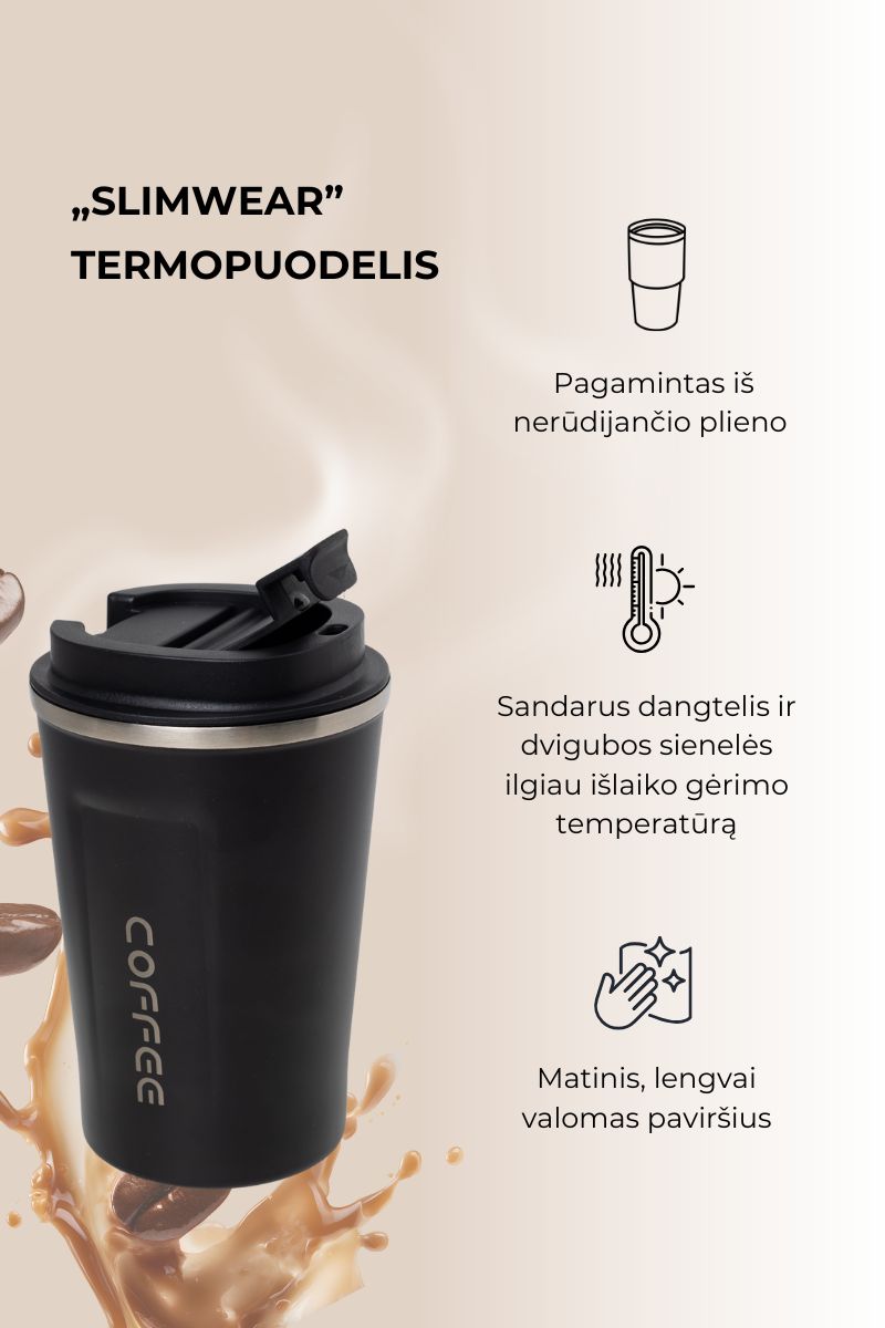 Šis termopuodelis yra tobulas pasirinkimas tiems, kurie vertina šilumą, stilių ir patogumą viename. Pagamintas iš aukštos kokybės nerūdijančio plieno, su matiniu, lengvai valomu paviršiumi, kuris suteikia elegancijos ir kasdienio jaukumo. Dvigubos sienelės konstrukcija ilgiau išlaiko gėrimą karštą ar šaltą.