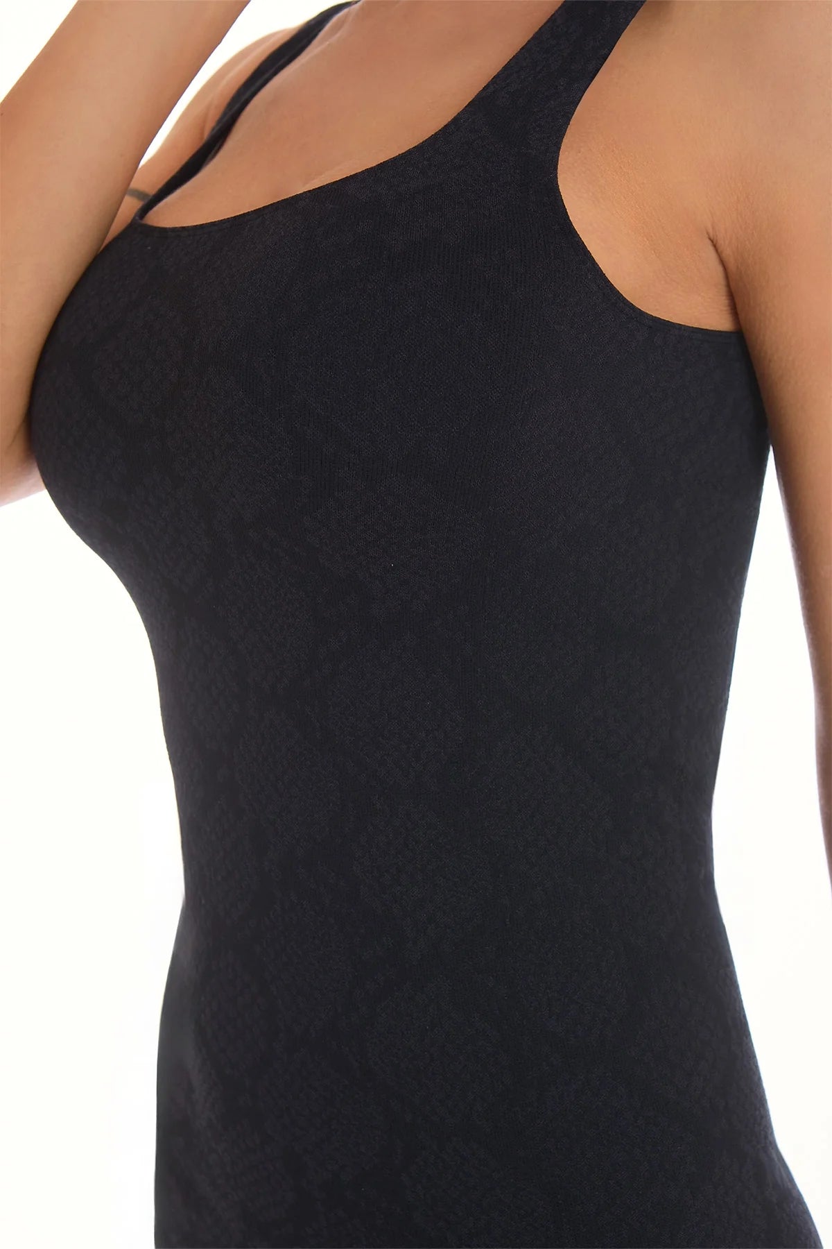 This black snake-print dress gently hugs the body and highlights the natural feminine silhouette. It does not squeeze or restrict movement, allowing you to feel free and comfortable throughout the day.