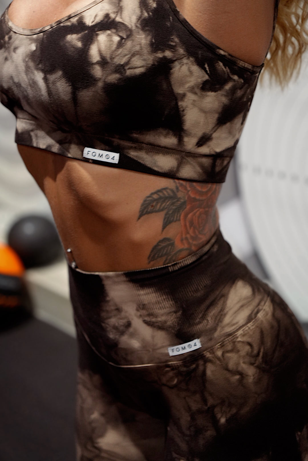 "Elements Terra" beige-brown leggings not only beautifully emphasizes and highlights the buttocks , but also masks cellulite marks. The rather high waist of the model emphasizes and slims the waist . This collection is unique in that no two leggings have the same pattern, all leggings are unique, the patterns are obtained with the batik technique.