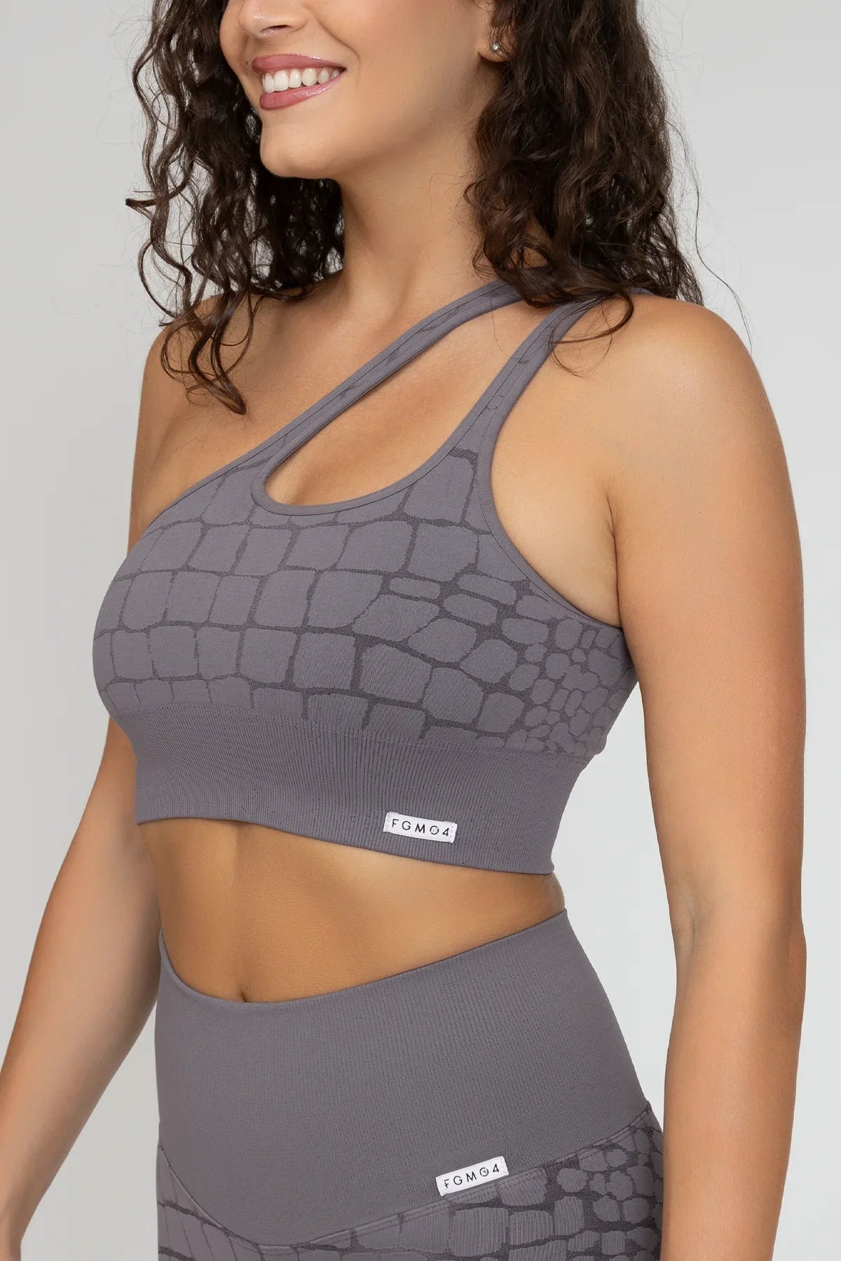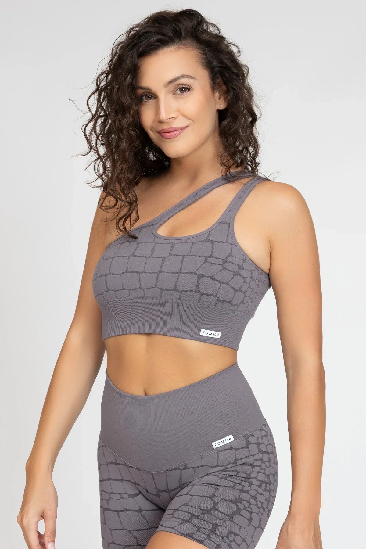 One-shoulder sports bra FGM04 "Crocodile" - grey